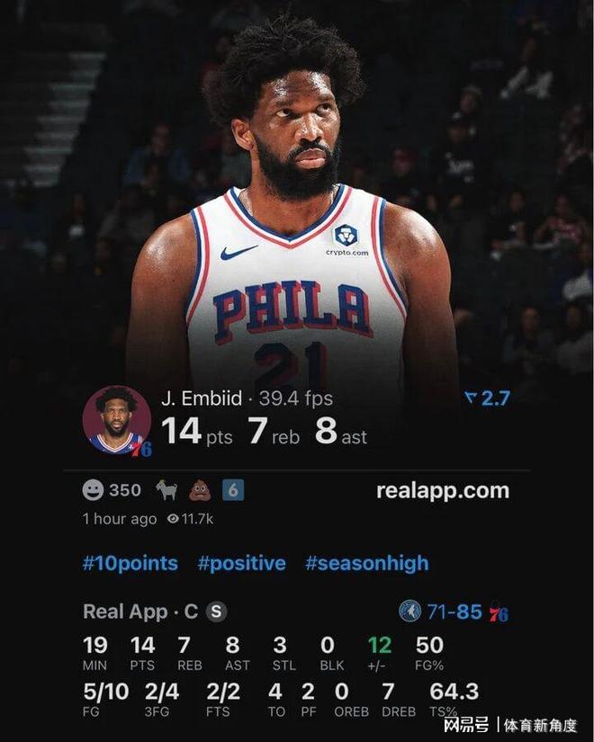 今日之战,恩比德仅出战19分钟,便以10投5中、三分球4投2中的高效表现,砍下14分、7篮板、8助攻、3抢断的全面数据。复出首秀便险些达成三双壮举,大帝此番打法,竟透露出几分另一味MVP的影子,令人不禁遐想:莫非他对再夺MVP奖杯已心生向往?新赛季,他是否将向场均三双发起挑战?